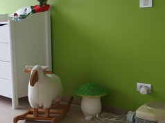 De kleuren in de leeftuimtes volgt de warme kleur van de nieuwe parket. Aan de kinderkamers werd een speelse toets gegeven door gebruik van felle kleuren. Zoals de eigenaars het zelf verwoorden : 'wij zijn eindelijk wakker geworden in ons droominterieur dankzij Martledeco'.